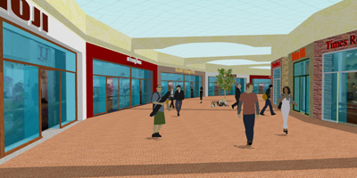 長い通路に店舗がまばらという閑散とした空間より、賑わいが連続する空間の方が良いでしょう。アメリカ型のショッピングモールの配置は参考となるはずです。